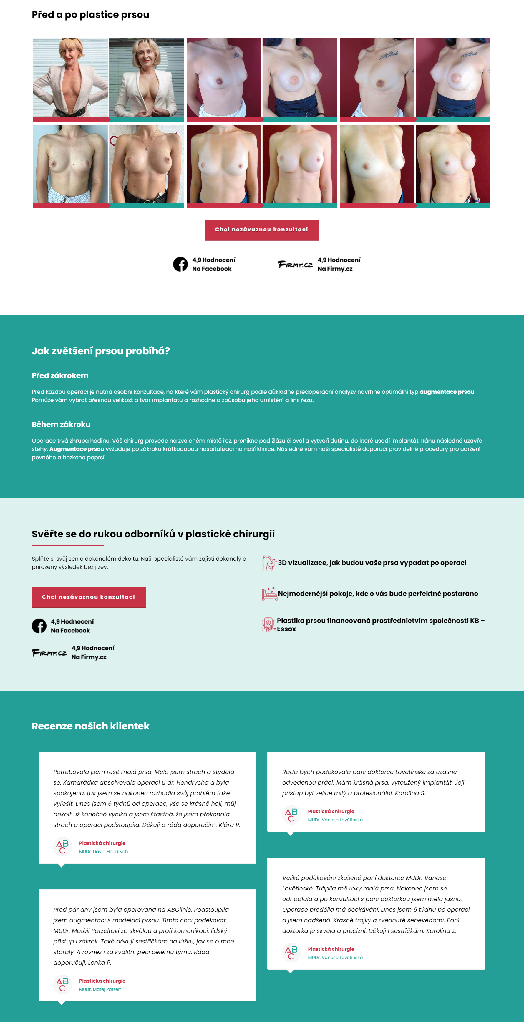My jsme přidali blok o financování, na které se klientky často dotazovaly ve zprávách, a odkazy a lékaře jsme ponechali jen ty související s daným zákrokem: